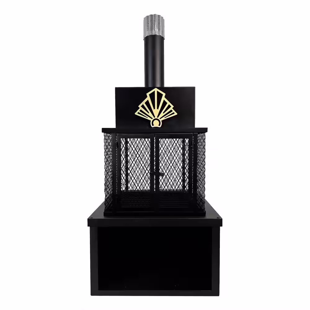 None 51.57 in. H Iron Wood Burning Outdoor Fireplace with Chimney and Included Wood Grate and Wheels