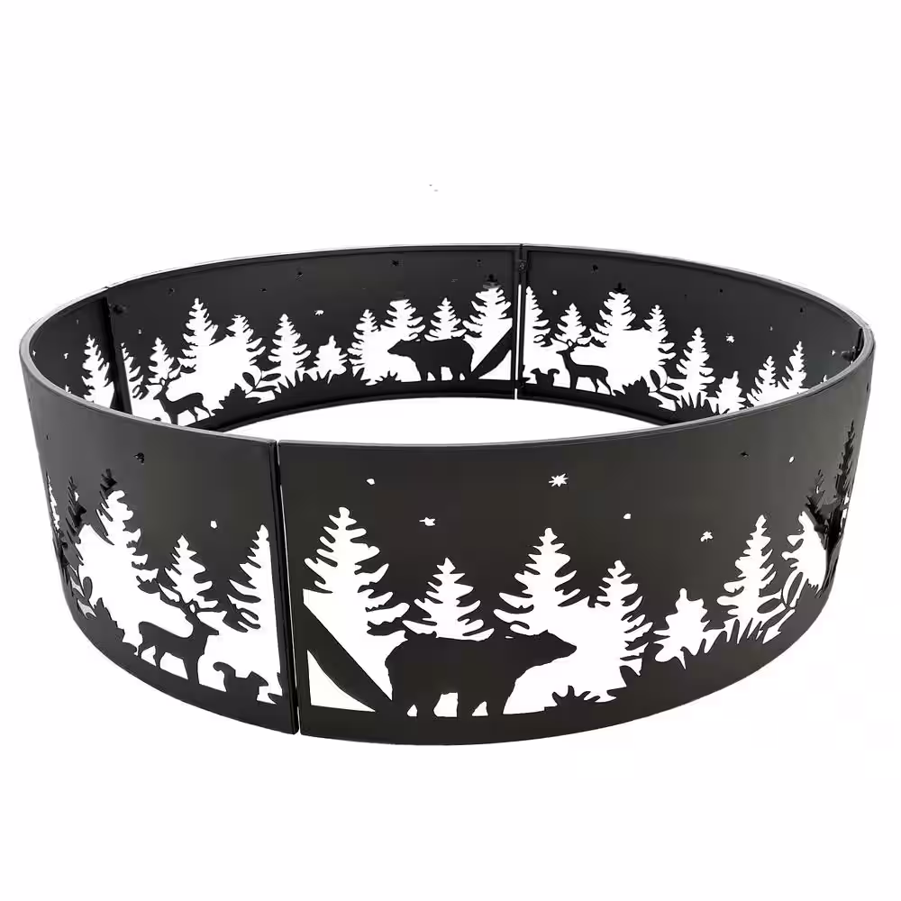 None 34 in. x 10 in. Outdoor Wood Burning Fire Ring in Black, Campsite