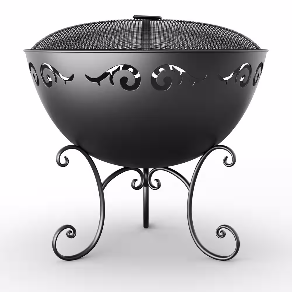 None 23 in. Outdoor Wood Black Burning Fire Bowl with Fire Poker and Waterproof Cover