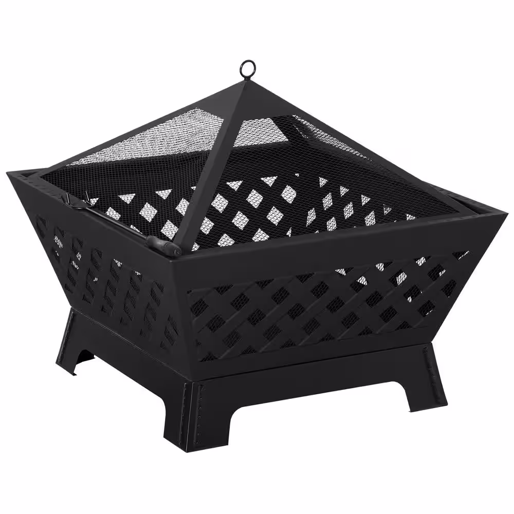 Outsunny 26 in. W x 26 in. H Outdoor Steel Fire Pit Bonfire with Spark Screen Cover