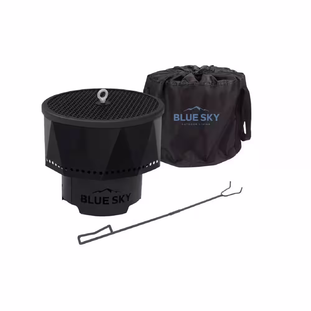 BLUE SKY OUTDOOR LIVING The Ridge 15.7 in. x 12.5 in. Round Steel Wood Pellet Portable Patio Fire Pit with Spark Screen, Lift and Carrying Bag
