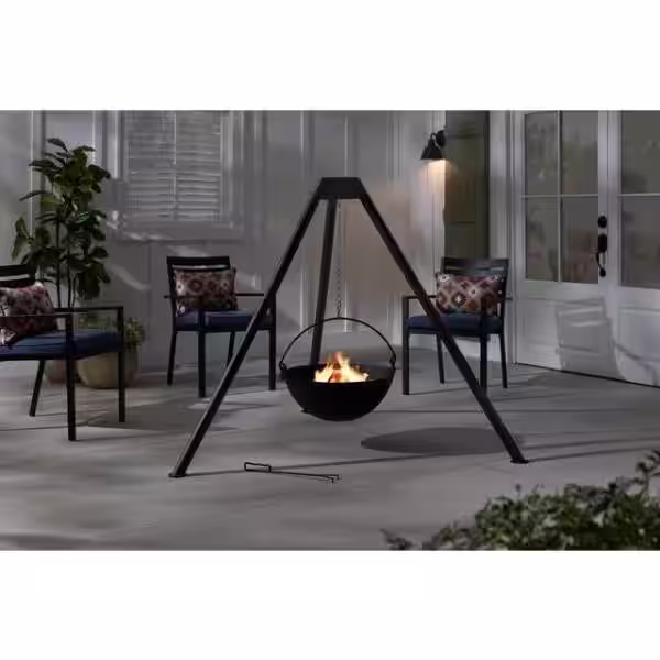 Hampton Bay Cowboy 22 in. Outdoor Cast Iron Wood Burning Black Fire Pit