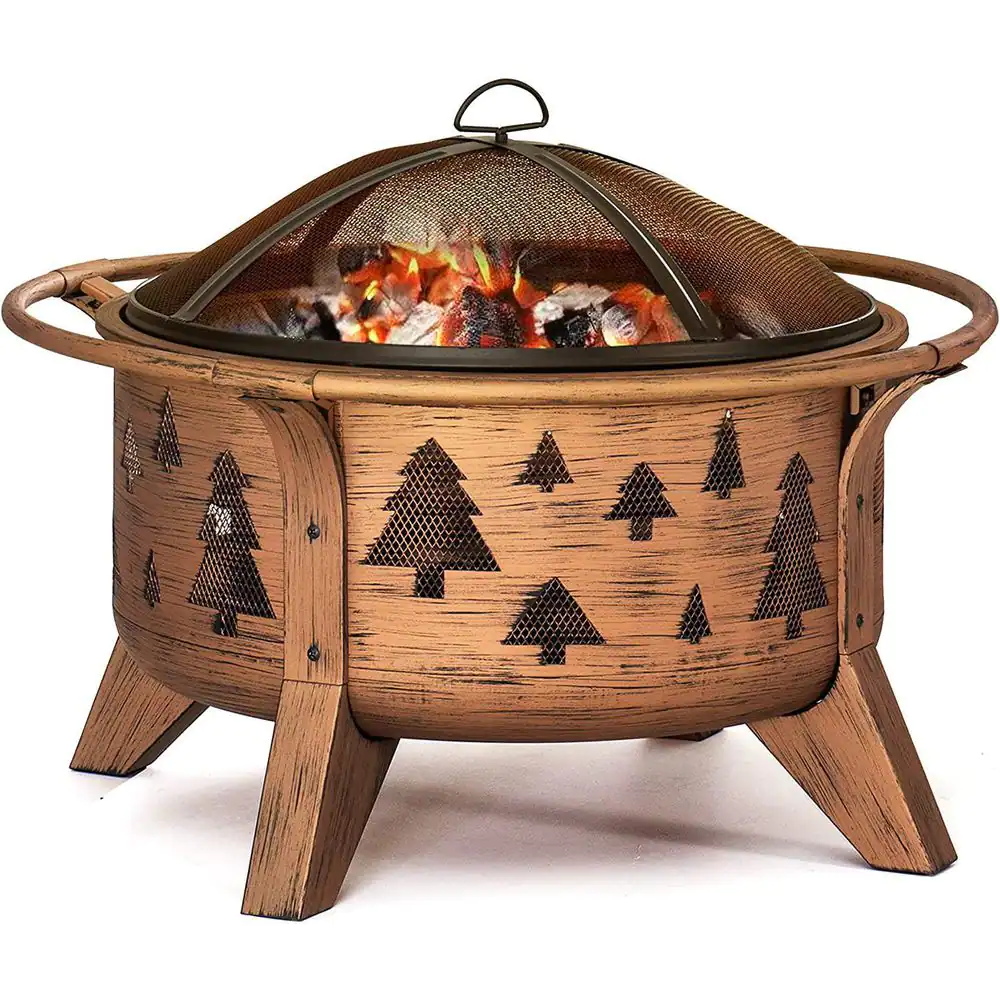 Sunjoy AmberCove 30 in. Outdoor Tree Motif Round Wood Burning Firepit