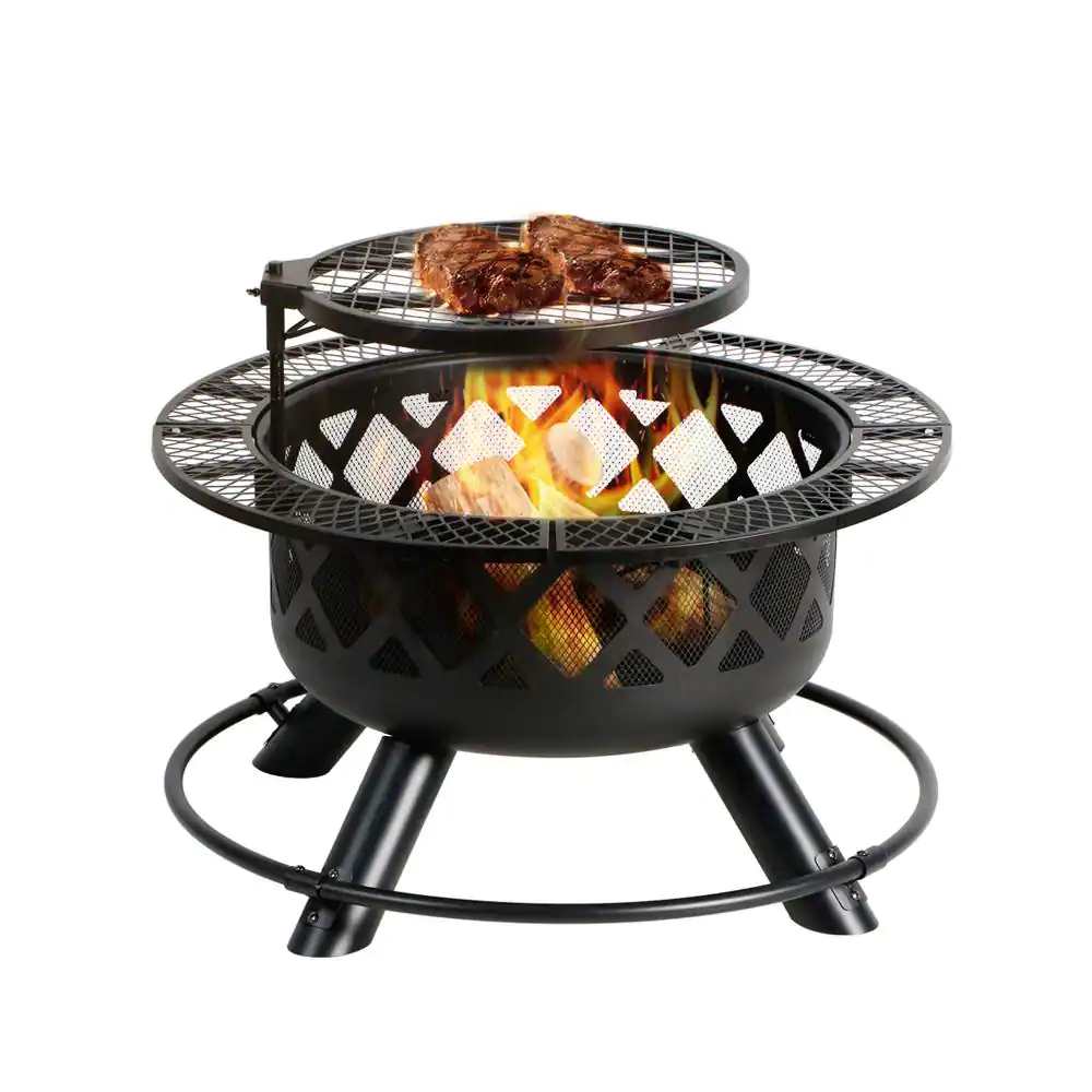 None 30 in. Outdoor Wood Burning Fire Pit with Cooking Grill