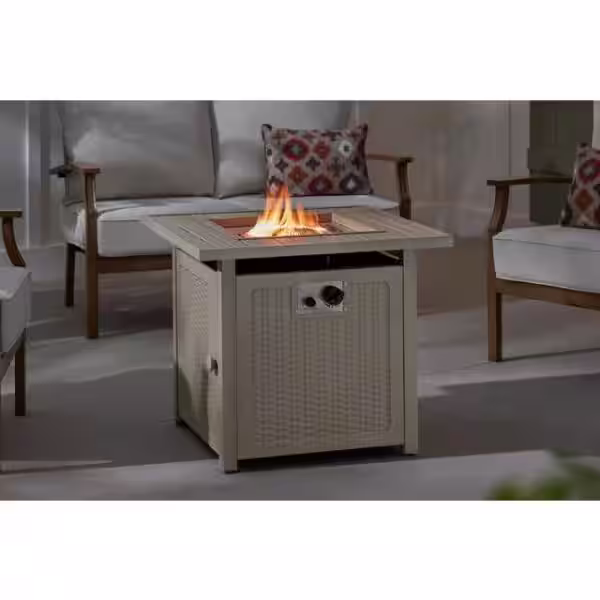 Hampton Bay 28 in. Outdoor Steel Propane Gray Gas Fire Pit Table
