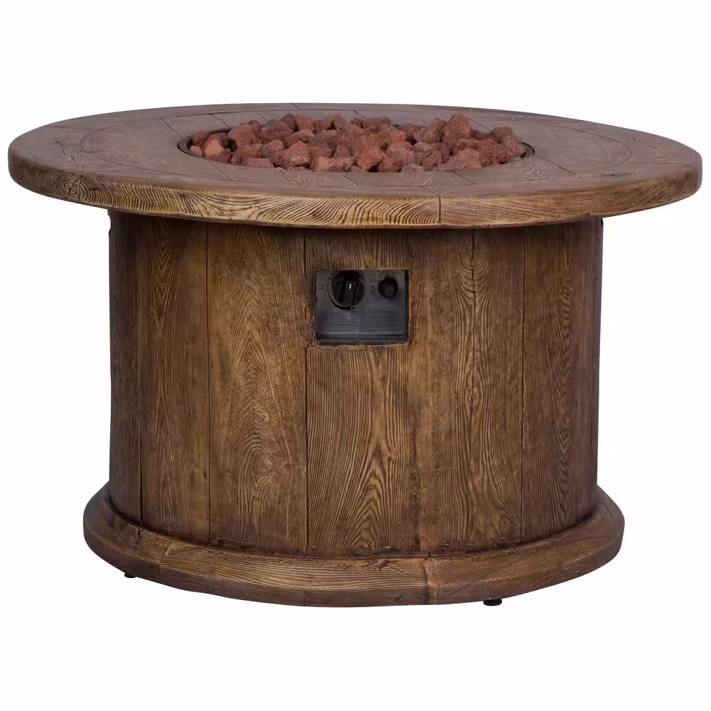 Shine Company Merida Round Outdoor Propane Gas Brown Fire Pit Table with Lava Rock, 40 in. Dia