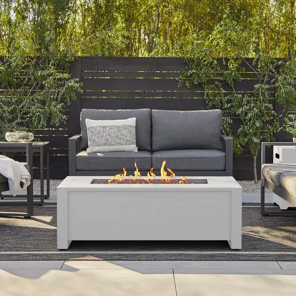 Real Flame Keenan 42 in. L x 24 in. W Outdoor Aluminum Propane Fire Table with Protective Cover in White