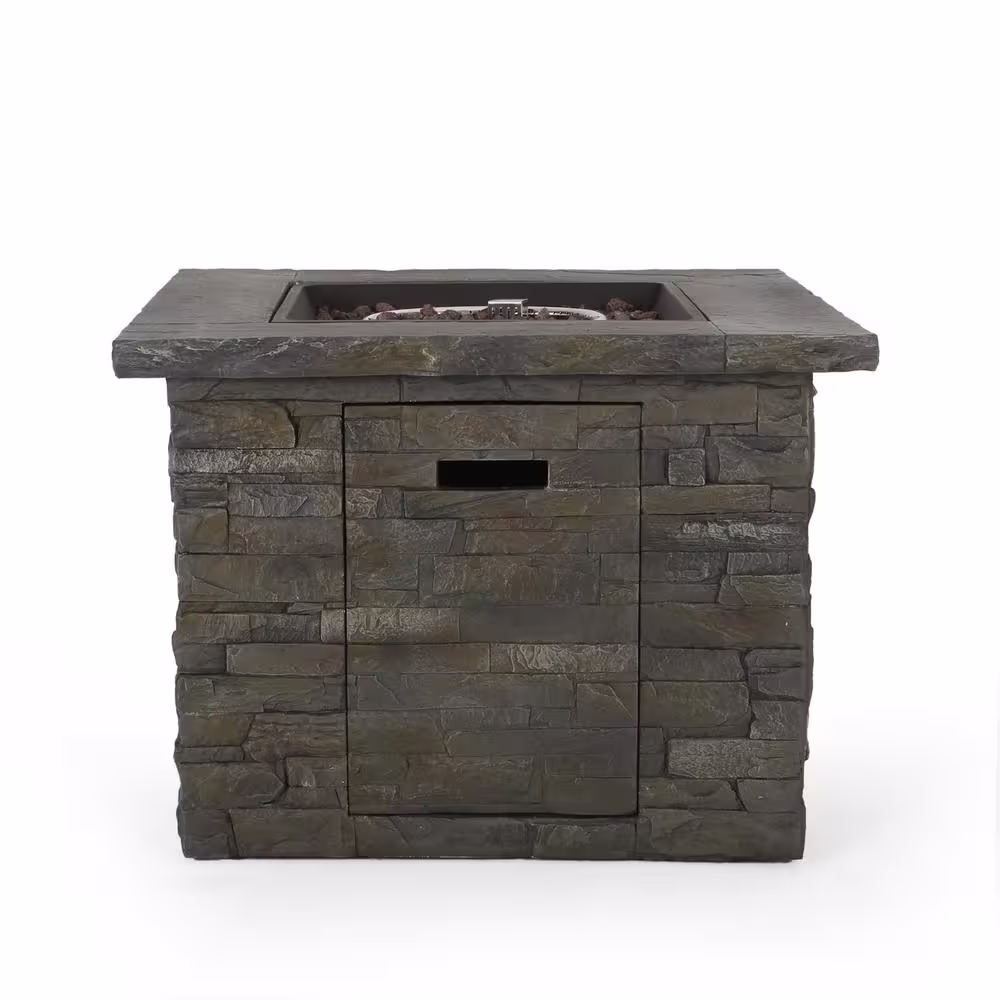 Noble House Blaeberry 34.5 in. x 24 in. Natural Stone Square Gas Outdoor Firepit