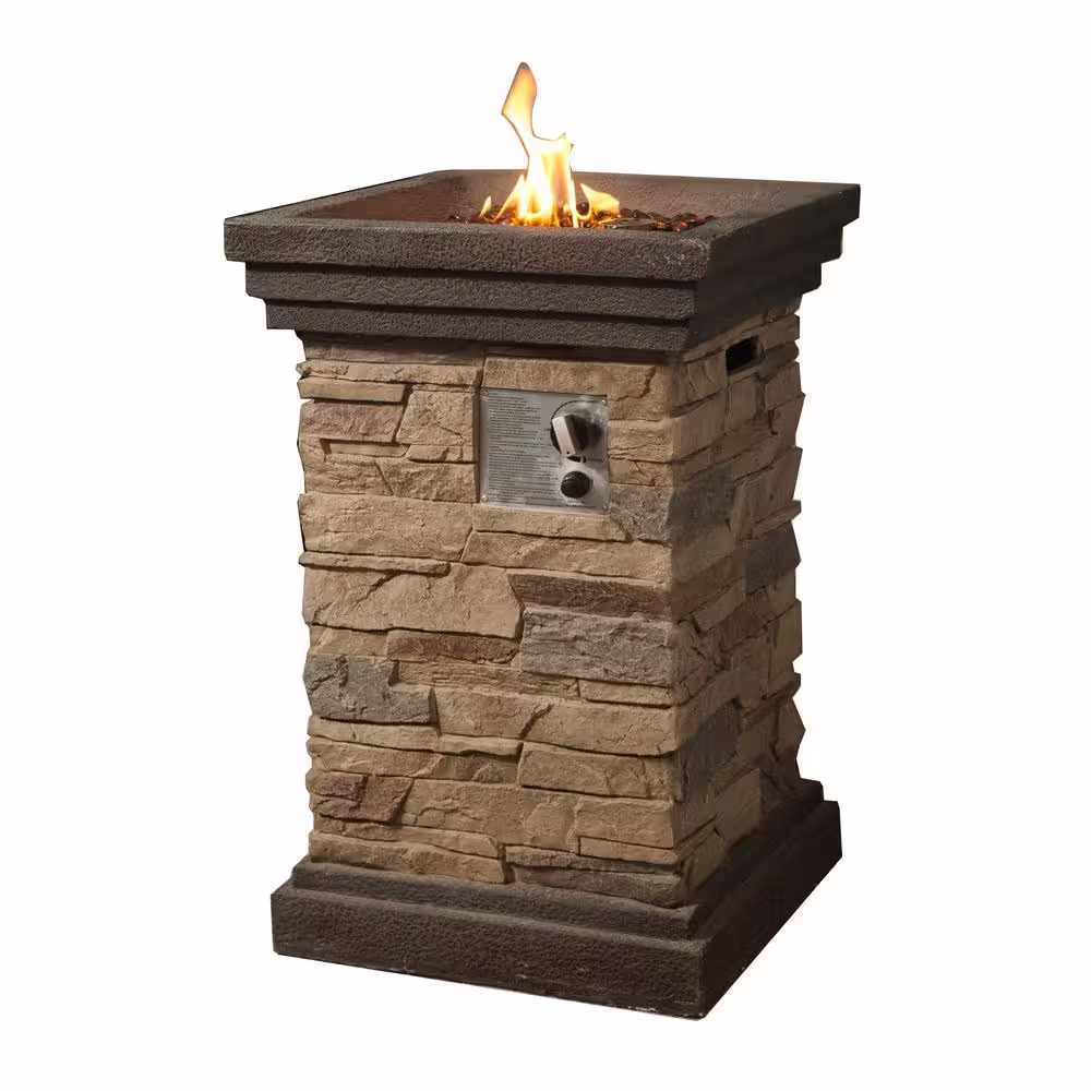 Teamson Home 20 in. Outdoor Square Slate Rock Gas Fire Pit