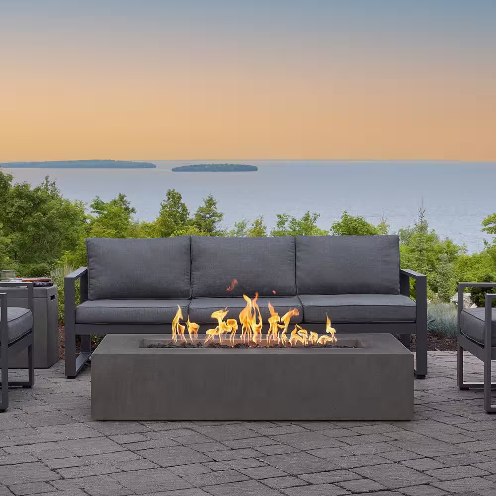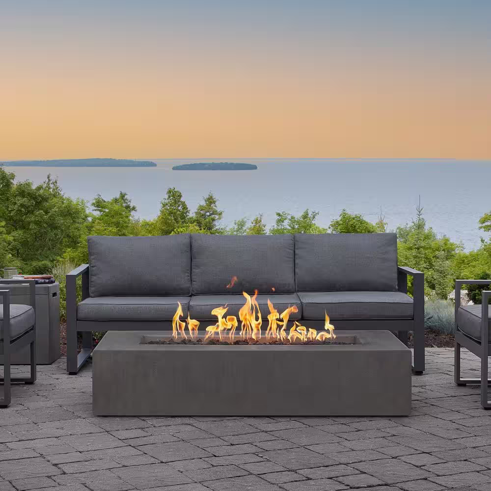 JENSEN CO Brookhurst 56 in. L X 13 in. H Outdoor GFRC Liquid Propane Fire Pit in Flint with Lava Rocks