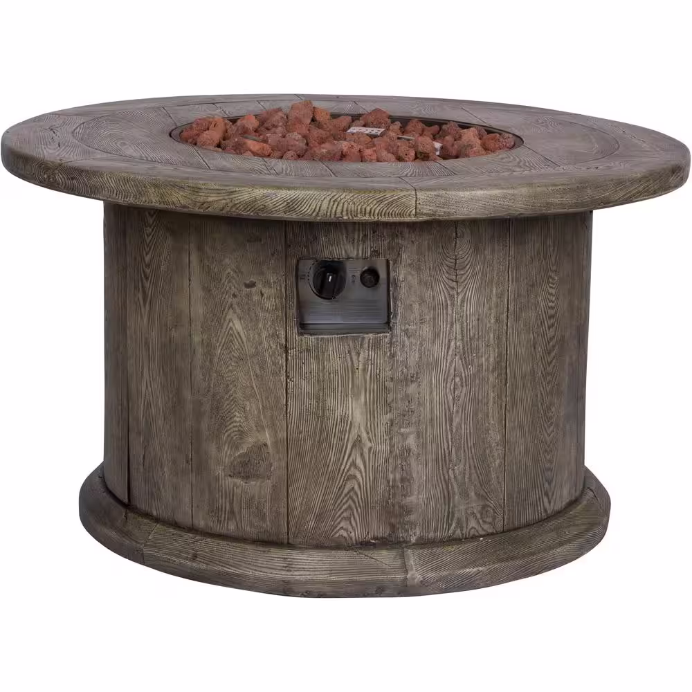 Shine Company Merida Round Outdoor Propane Gas Grey Fire Pit Table with Lava Rock, 40 in. Dia
