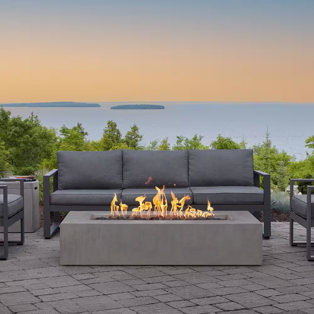 None Matteau Low 60 in. L x 12 in. H Outdoor Rectangular Concrete Composite Propane Fire Table in Flint with Vinyl Cover