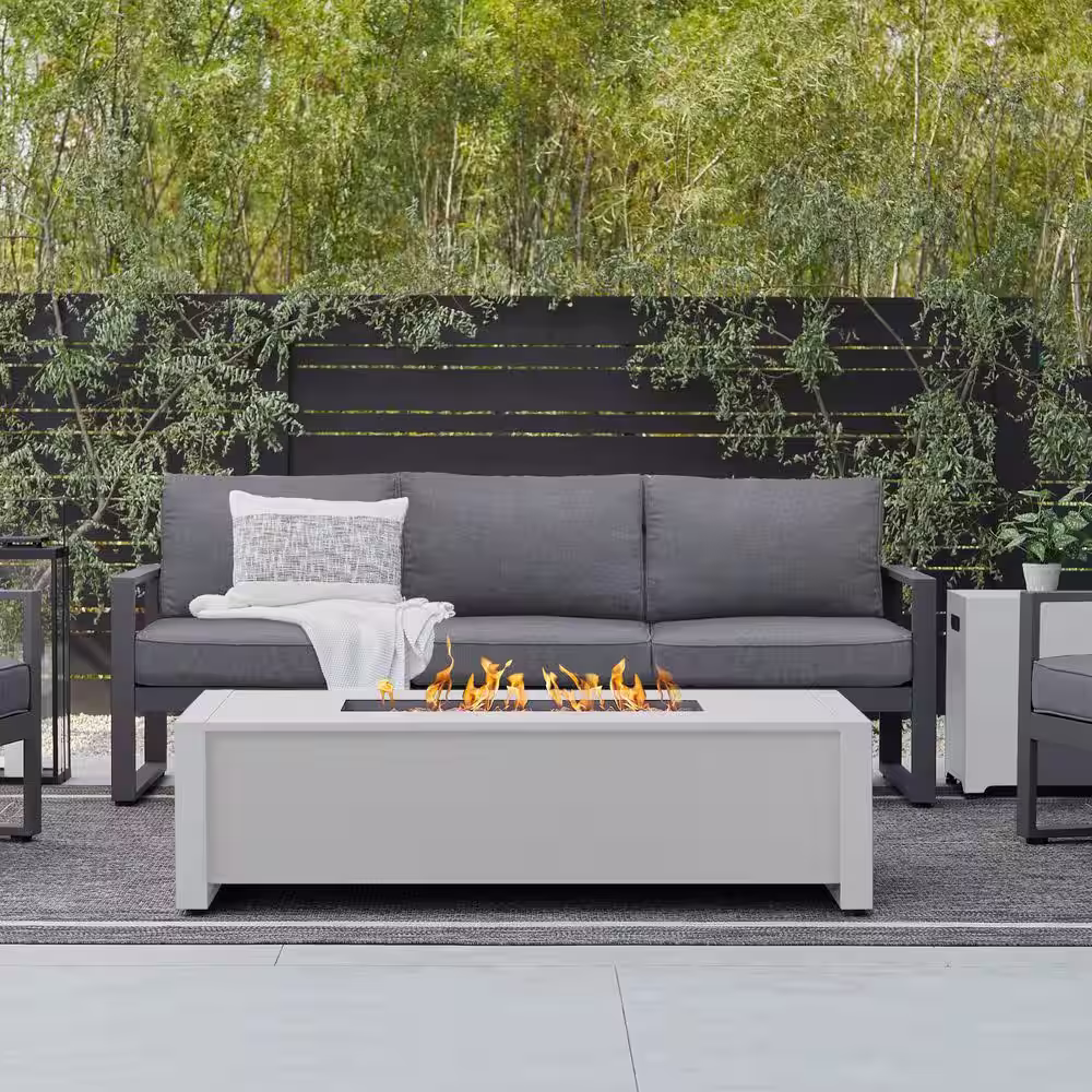 Real Flame Keenan 52 in. W x 26 in. D Outdoor Aluminum Liquid Propane Fire Table in White with Protective Cover