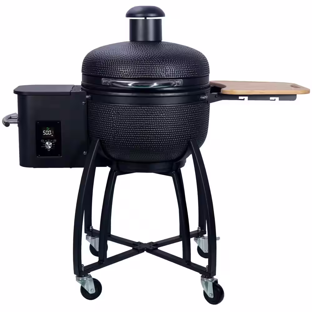 Cesicia Outdoors Patio Black 24 in. Smoked Roasted BBQ Ceramic Pellet Grill in Color with 19.6 in Gridiron Double Ceramic Liner