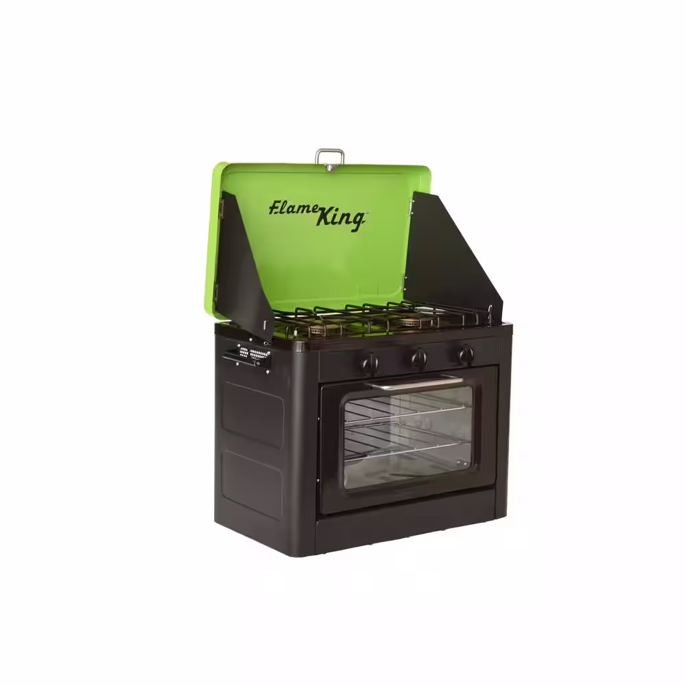 Flame King Portable Outdoor Propane Oven, Two Burner Stove Combo for Camping, RV, Tailgating, Trailer