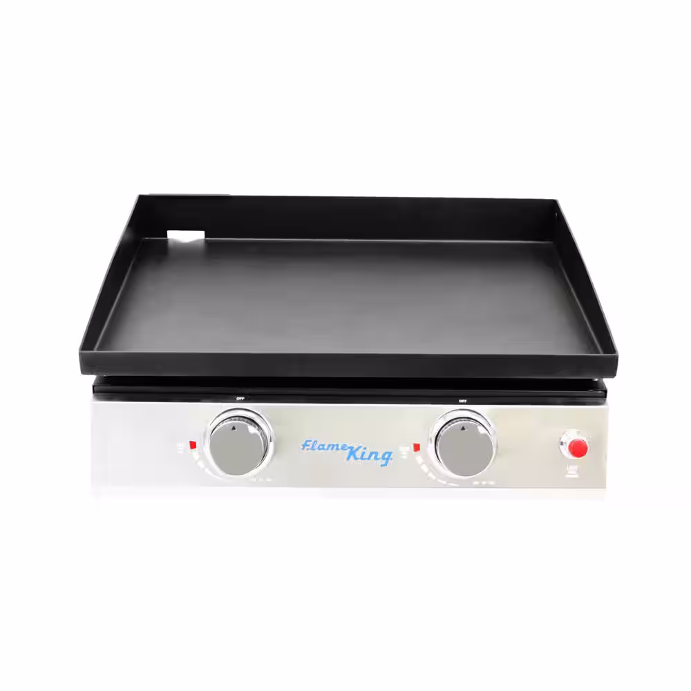 Flame King 2-Burner Propane Tabletop, Heavy Duty Flat Top Cast Iron Outdoor Griddle Grill