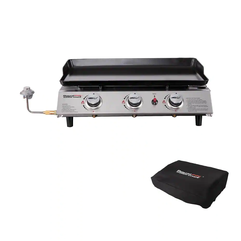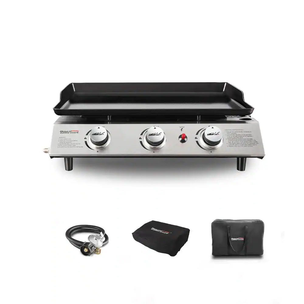 Royal Gourmet 3-Burner 26,400-BTU Portable Gas Grill Griddle, Regulator, Cover and Carry Bag Included, Outdoor Camping, Tailgating