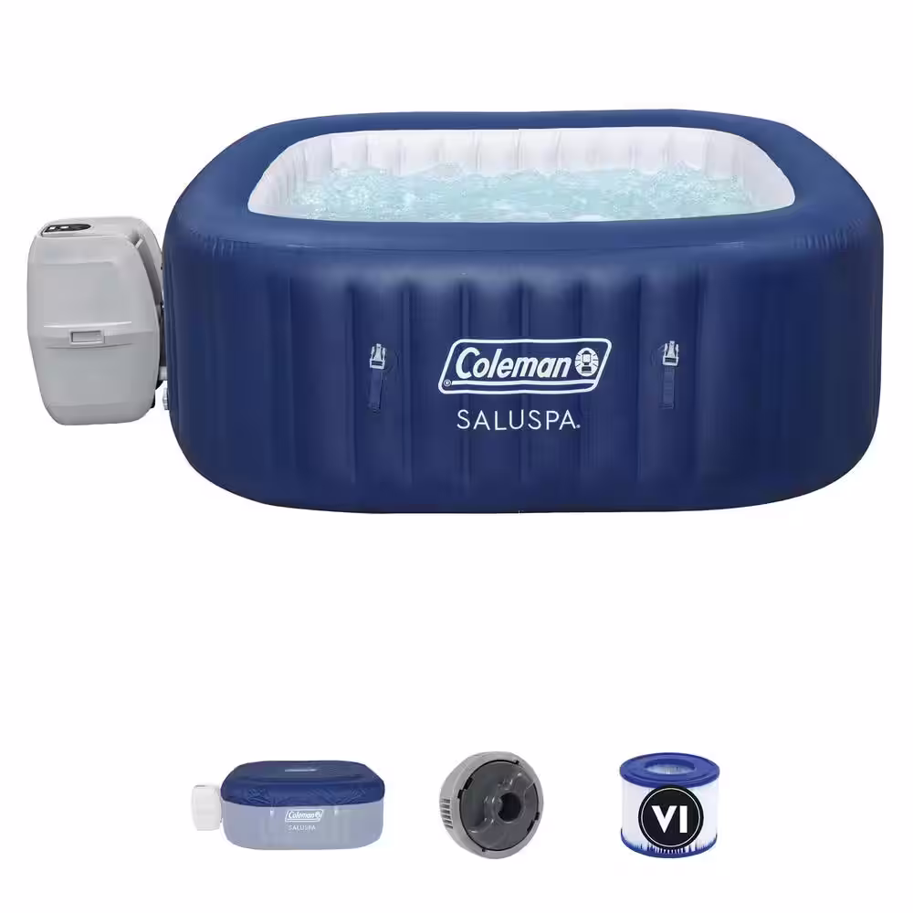 Bestway SaluSpa 4-Person 60-Jet Square Portable Inflatable Outdoor Hot Tub Spa, Blue