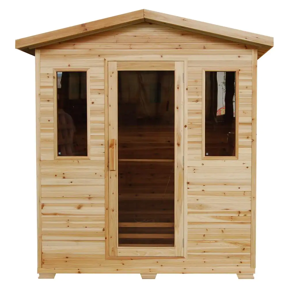 ALEKO 5-Person Electric Canadian Hemlock Wet Dry Outdoor Sauna with Asphalt Roof and 6kW ETL-Certified Heater