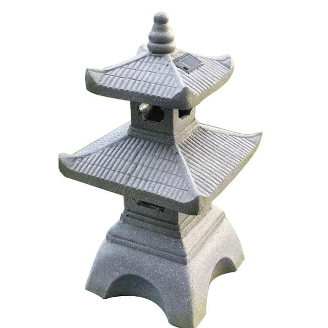 HomeRoots 473207 26 in. Dark Gray Pagoda Solar Light Lantern Outdoor Statue, Black