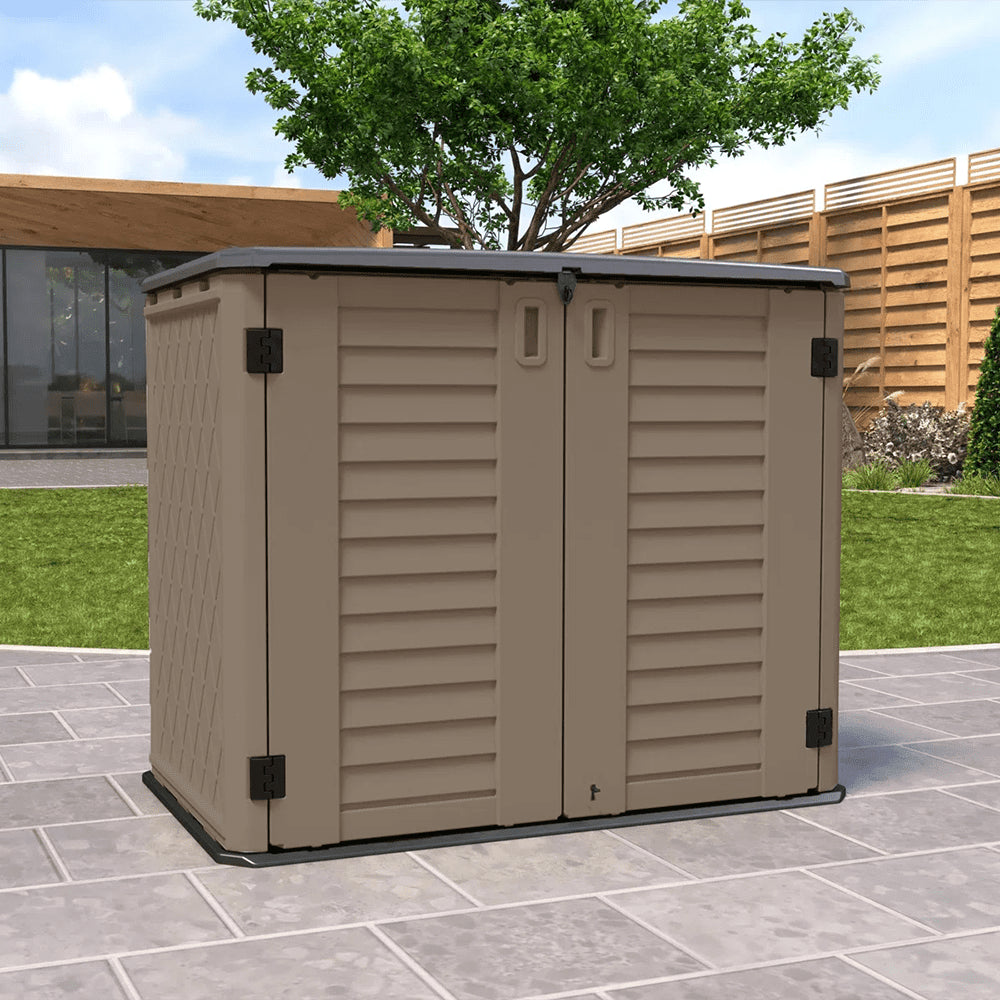 KINYING Small Horizontal Storage Sheds,26 cu.ft Resin Outdoor Storage Shed Weather Resistance(Brown)