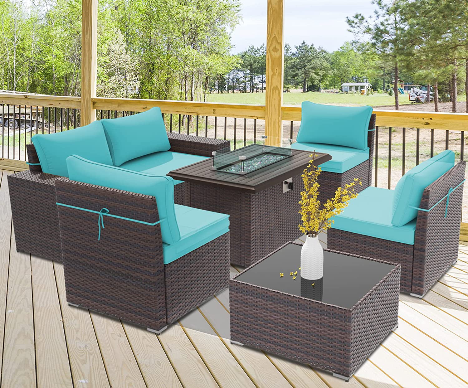 ALAULM Outdoor Patio Furniture Set with Propane Fire Pit Table, 7 Pieces Outdoor Furniture Patio Sectional Sofa Conversation Sets w/ETL Approved 43