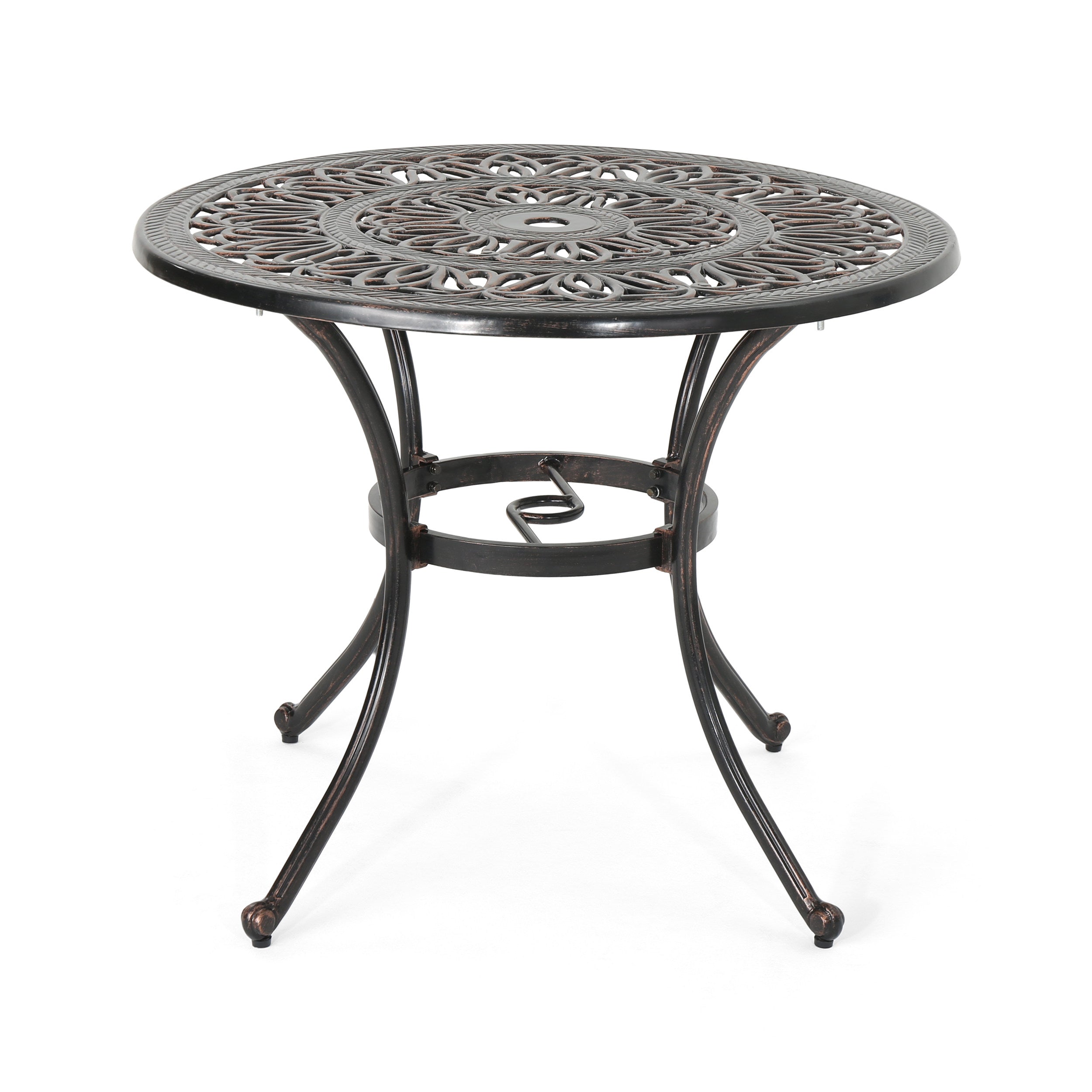 Jamie Outdoor Round Cast Aluminum Dining Table, Shiny Copper