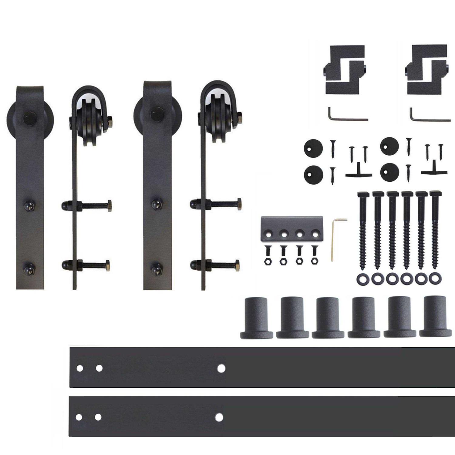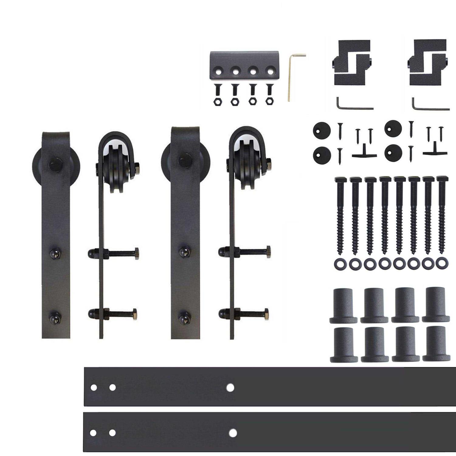 HOMACER Rustic Black Indoor/Outdoor J-strap Barn Door Hardware Kit