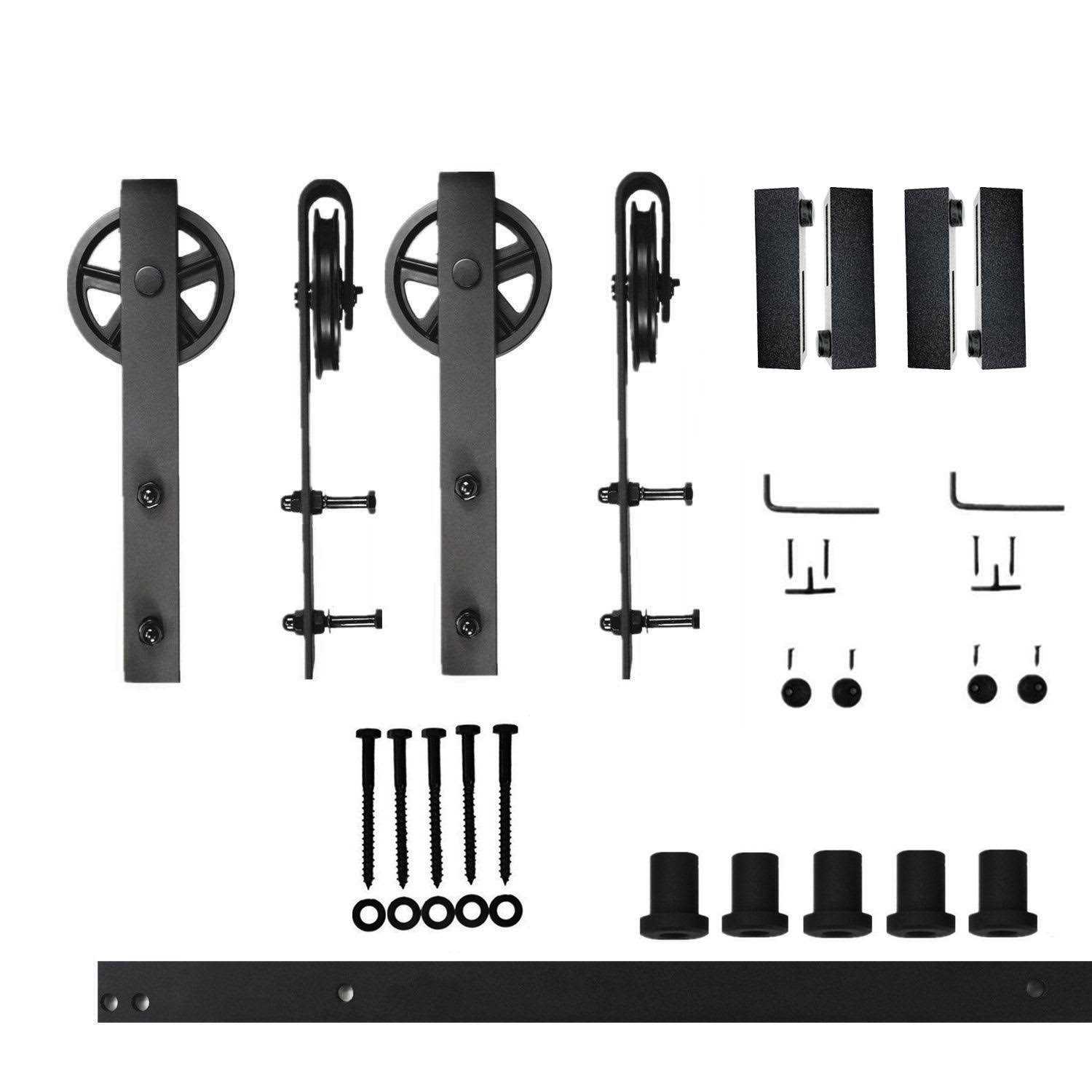 HOMACER Rustic Black Indoor/Outdoor Spoke Wheel Barn Door Hardware Kit