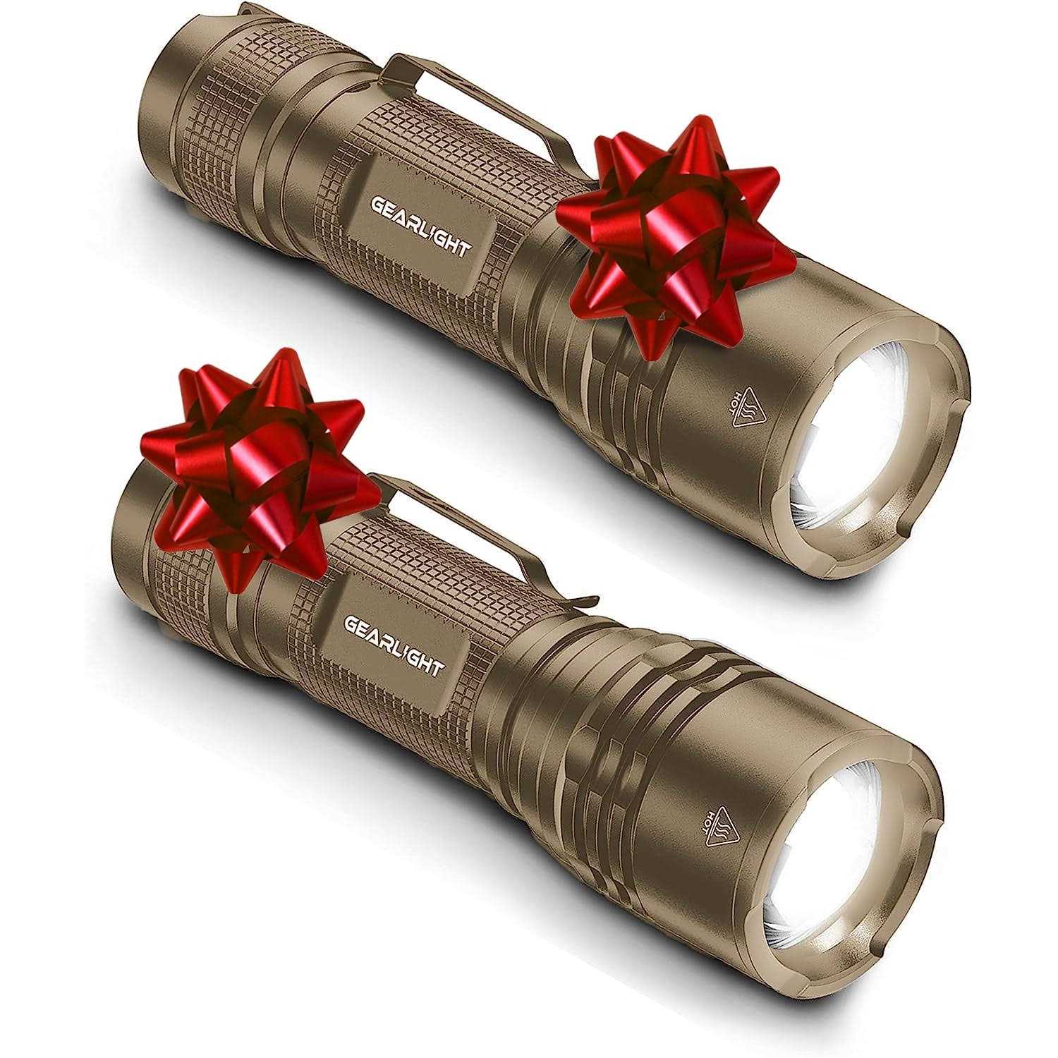 GearLight TAC LED Flashlight Pack 2 Super Bright Compact Tactical Flashlights with High Lumens for Outdoor Activity & Emergen