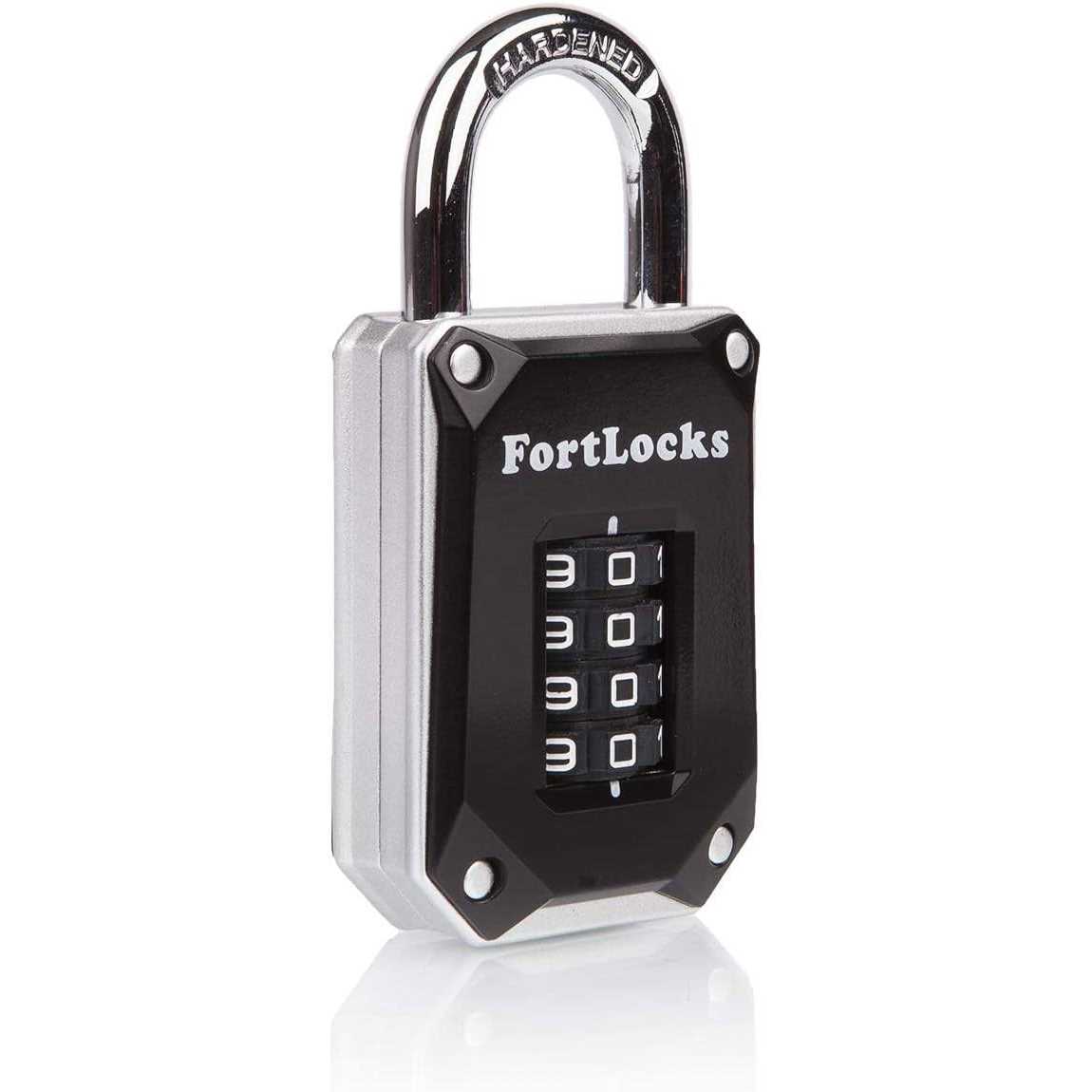 FortLocks Gym Locker Lock 4 Digit, Heavy Duty, Hardened Stainless Steel, Weatherproof and Outdoor Combination Padlock
