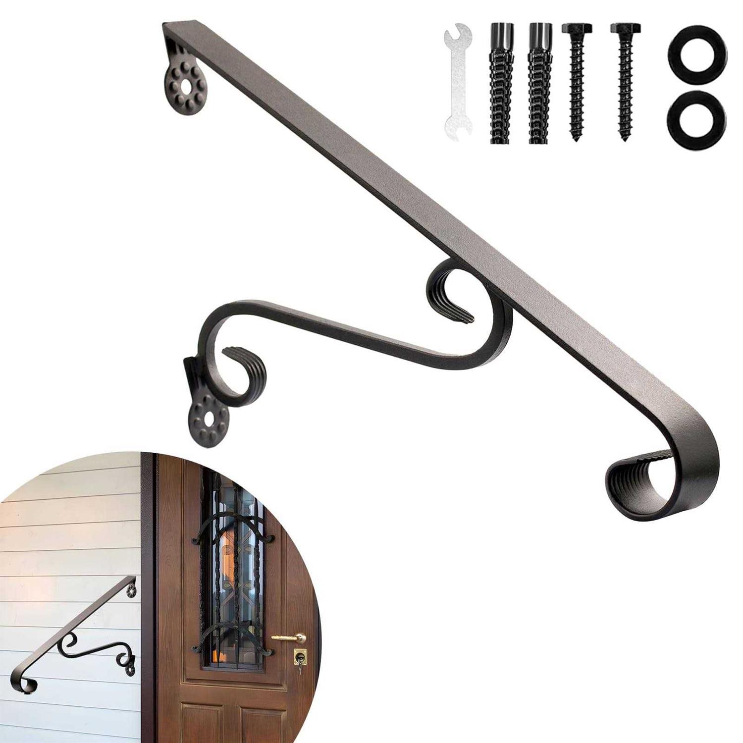Eachome Wrought Iron Handrail Wall Mounted Hand Railing Fit for 1-2 Steps for Outdoor Porch Steps