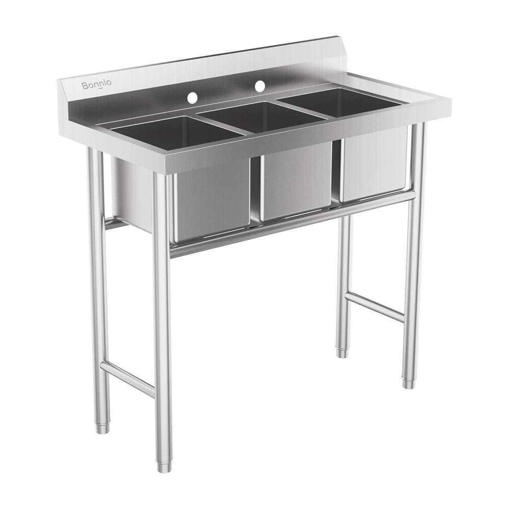 Bonnlo 3-Compartment 304 Stainless Steel Utility Sink Commercial Grade Laundry Tub Culinary Sink for Outdoor Indoor