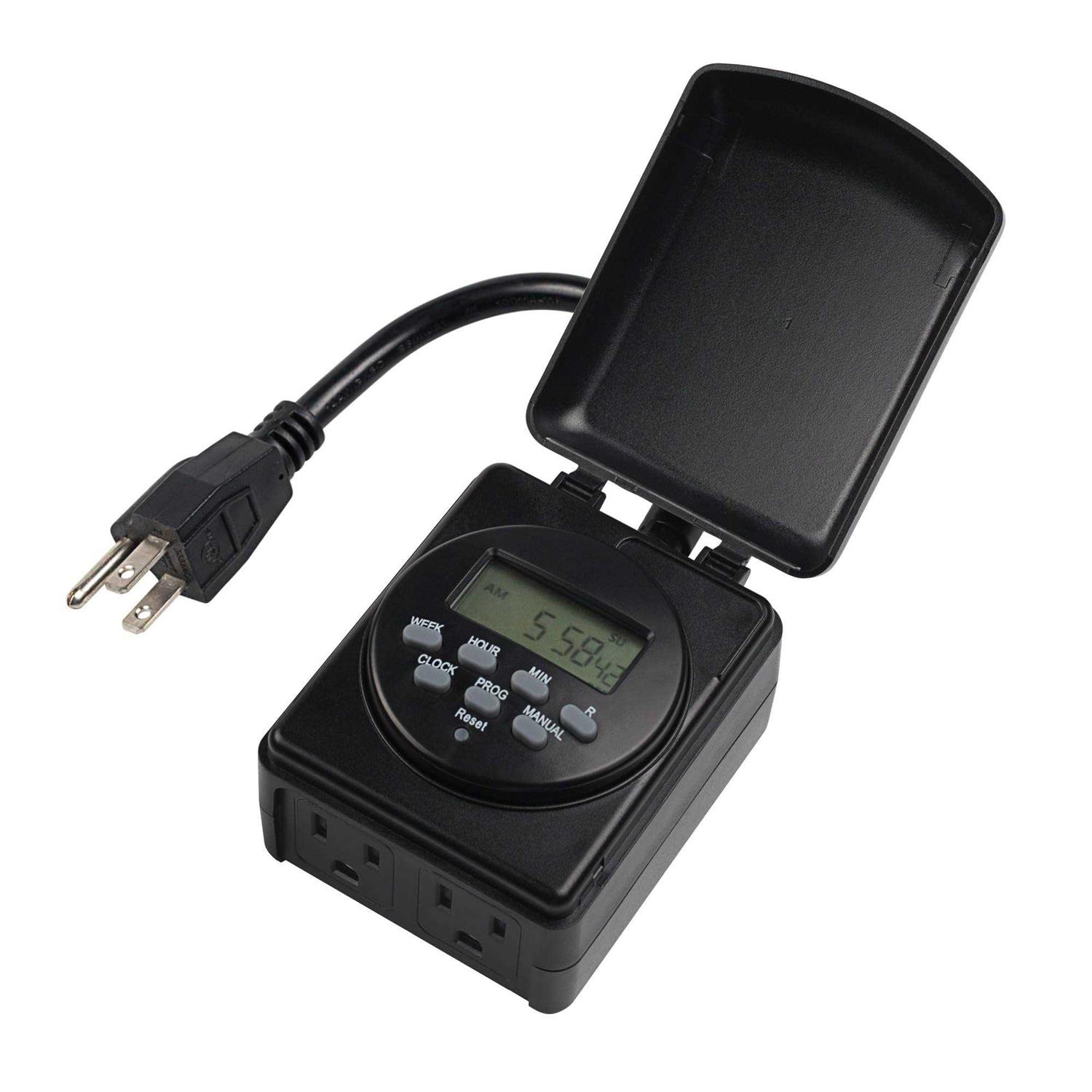 BLACK+DECKER Outdoor 2 Grounded Outlets Timer with Waterproof Outlet Timer for Lights BDXPA0030