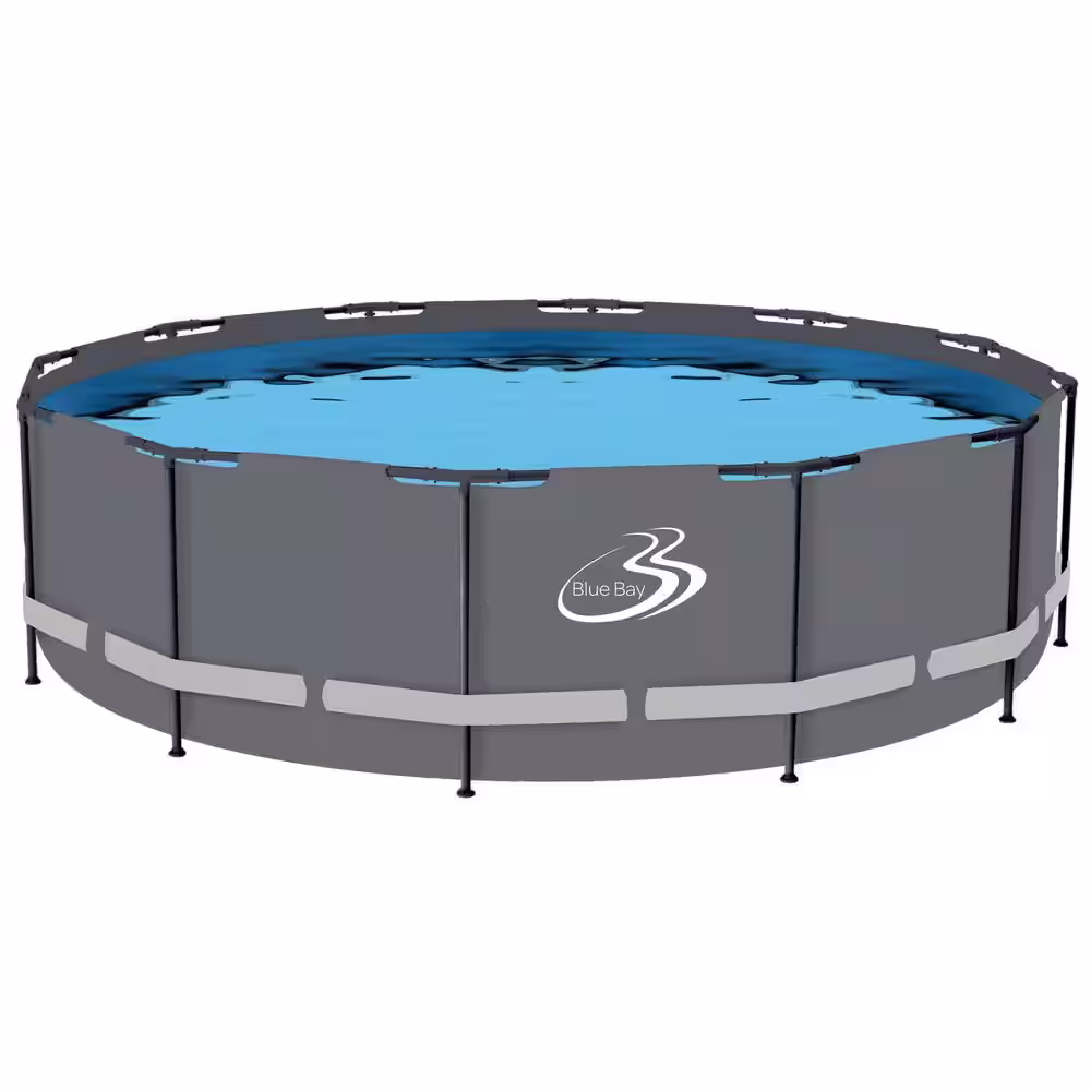 Sunneday Blue 15 ft. round x 48 in. D Bay Grey Soft-Sided/White Tubing