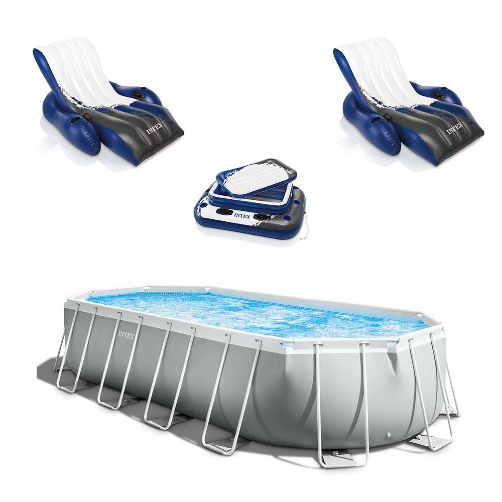Intex Prism 20 ft. x 10 ft. Oval 48 in. D Metal Pool with Inflatable Loungers (2-Pack) and Inflatable Cooler