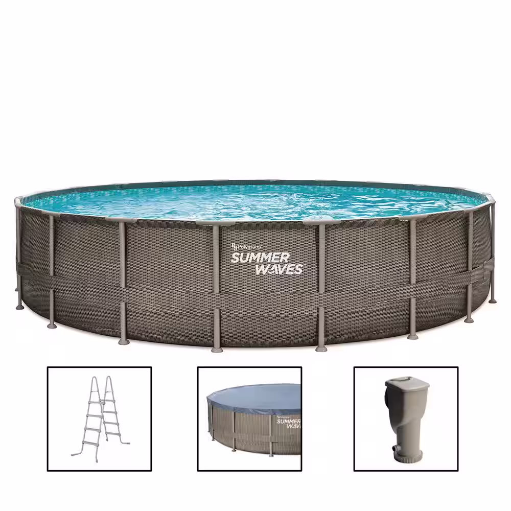 Summer Waves Elite Dark Basketweave 20 ft. Round 48 in. Deep Metal Frame Pool