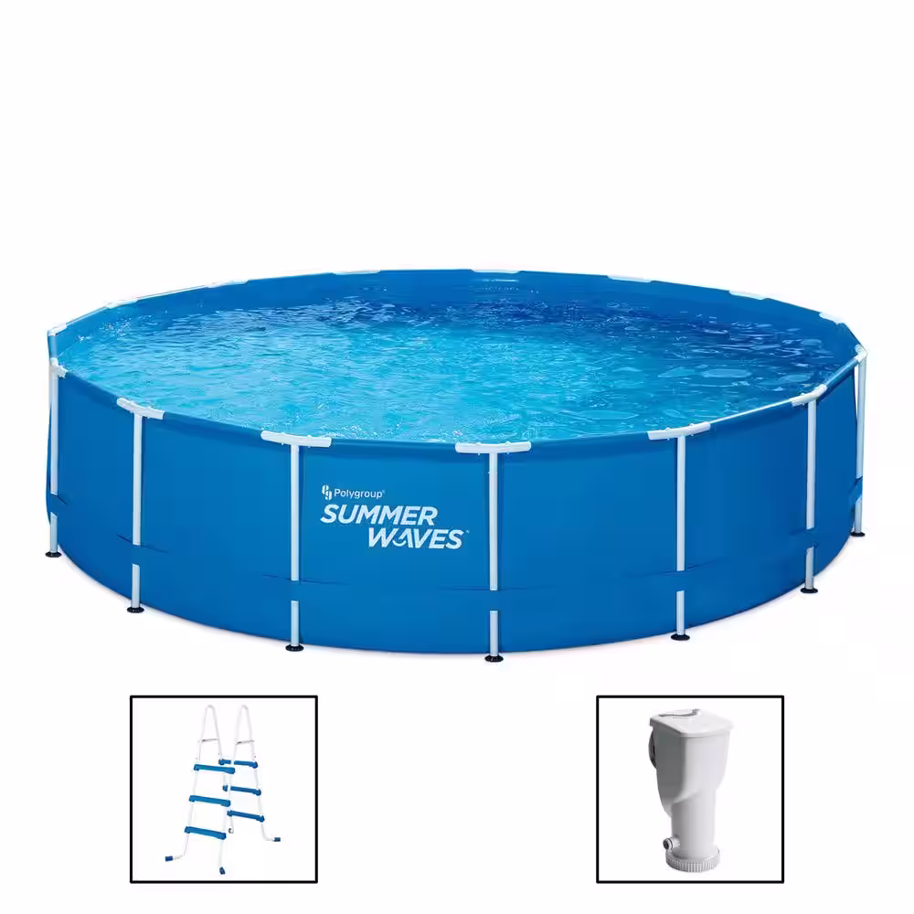 Summer Waves 15 ft. Round 42 in. Deep Metal Frame Pool