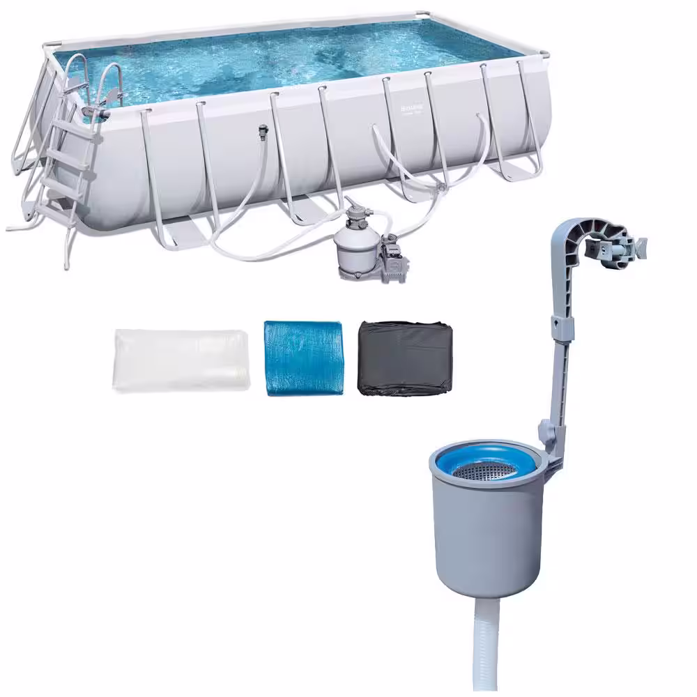 Bestway 18 ft. x 9 ft. Rectangular 48 in. D Hard Side Frame Above Ground Pool Set and Surface Skimmer