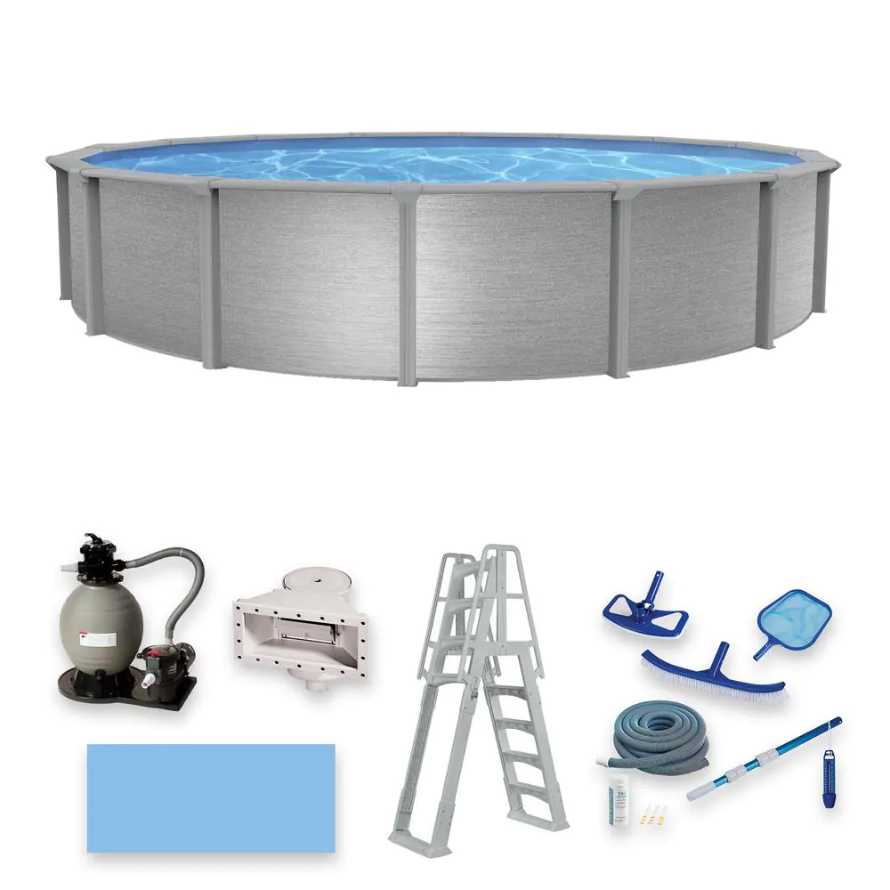 Blue Wave Montauk 18 ft. Round 52 in. Deep 7 in. Top Rail Hybrid Swimming Pool Package