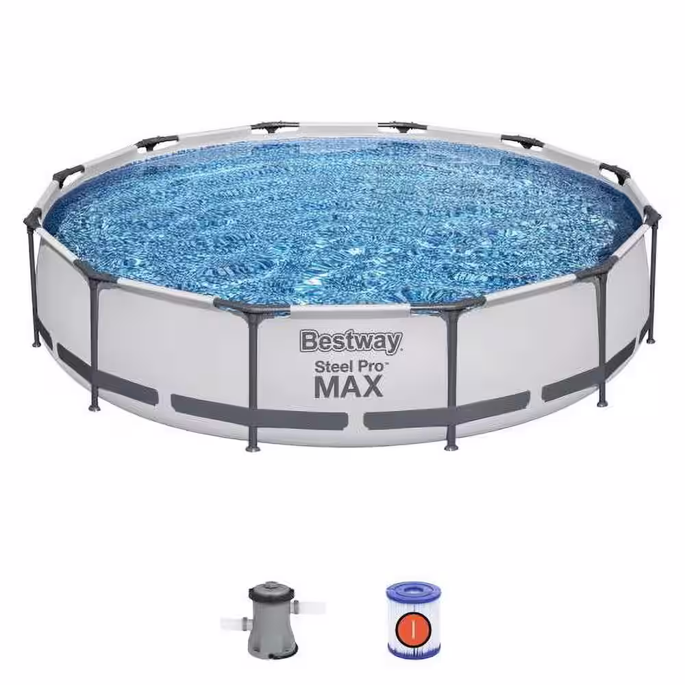 Bestway Steel Pro Max 12 ft. x 30 in. Frame Round Above Ground Swimming Pool w/Pump