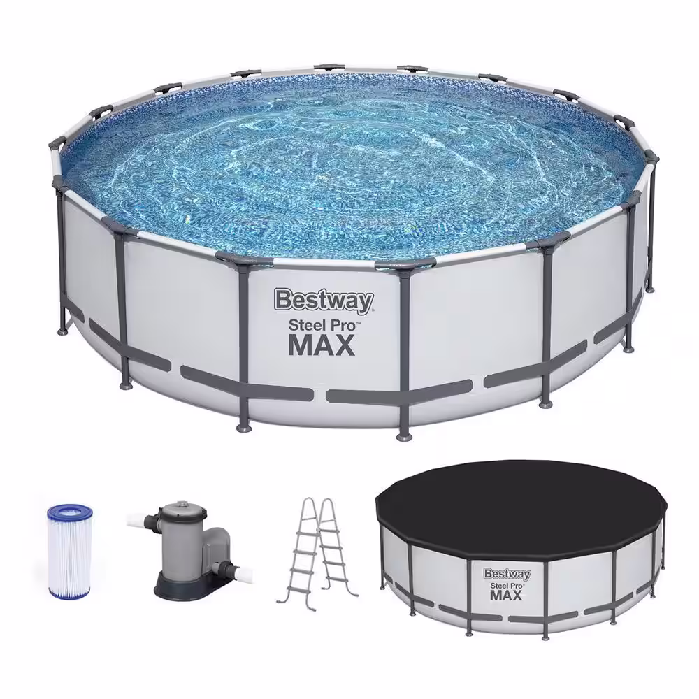 Bestway Pro MAX 16 ft. x 16 ft. Round 48 in. Metal Frame Above Ground Swimming Pool with Pump & Cover