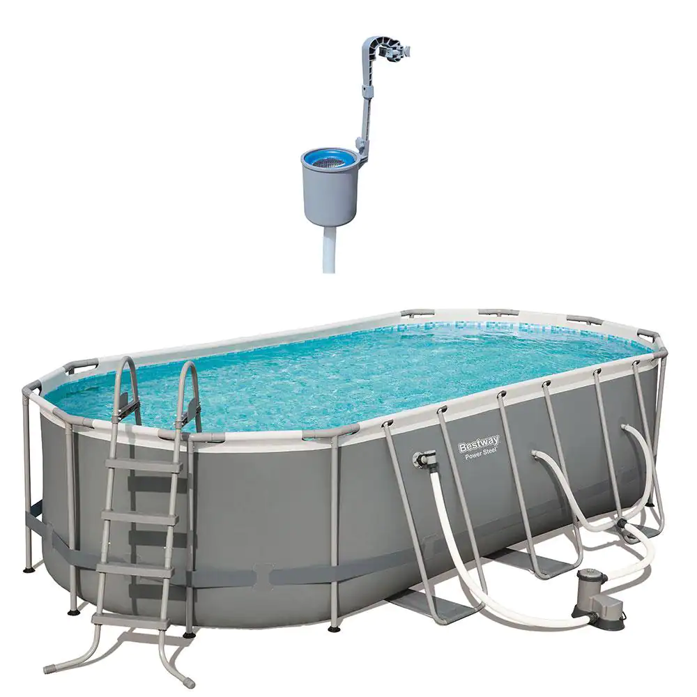 Bestway 18 ft. Power Steel Swimming Pool Set with Surface Skimmer Debris Cleaner
