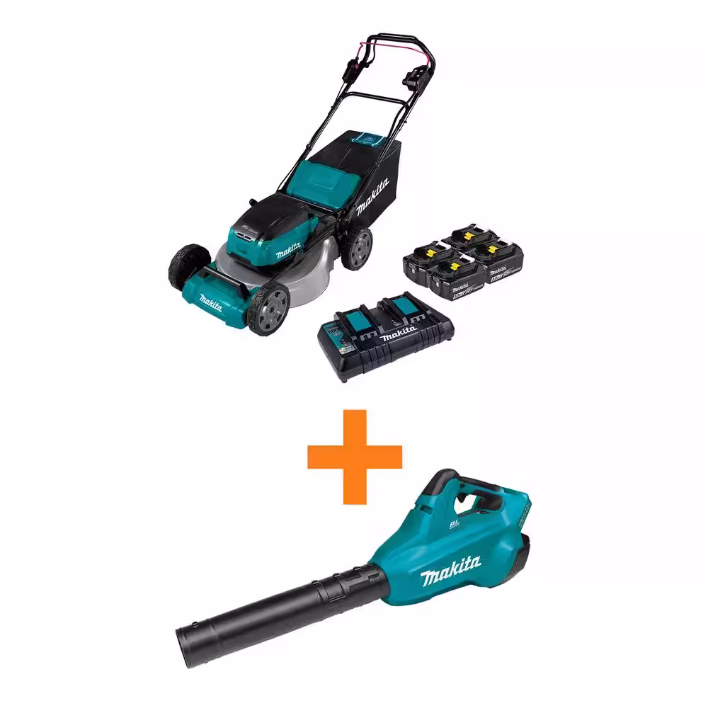 Makita 18-Volt X2 (36V) LXT Cordless 21 in. Lawn Mower Kit & 4 batteries (5.0Ah) with bonus 18-Volt Brushless Cordless Blower