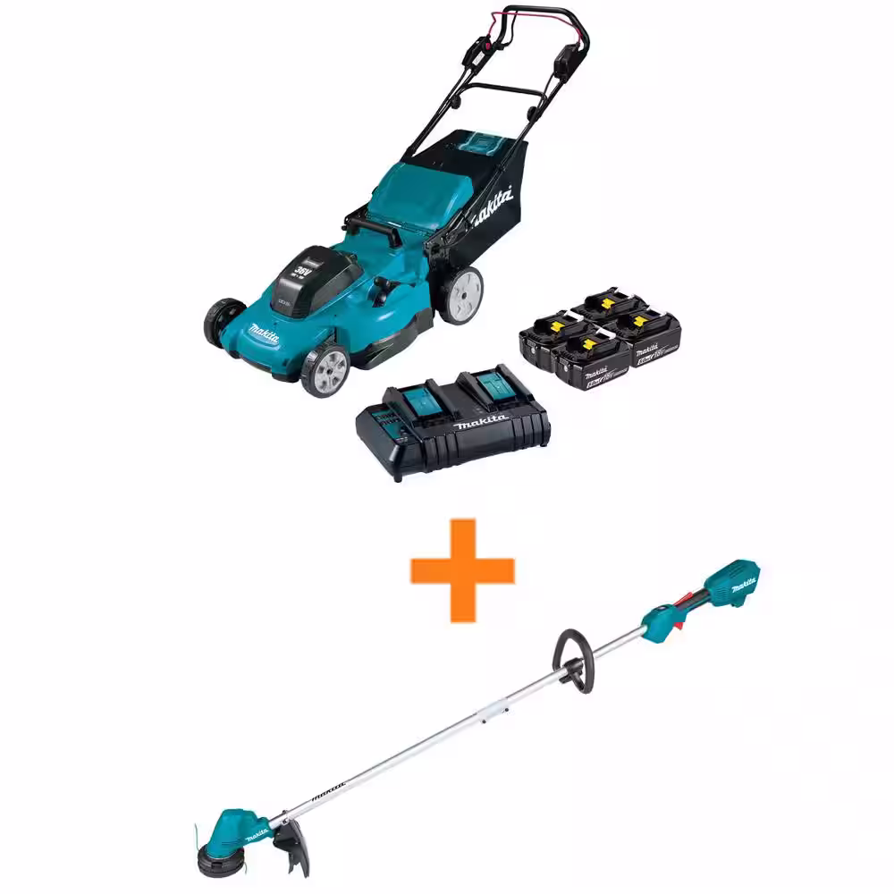 Makita 18V X2 (36V) LXT Cordless 21 in. Self-Propelled Commercial Lawn Mower, 4 Batteries (5.0Ah) & bonus 13 in. String Trimmer
