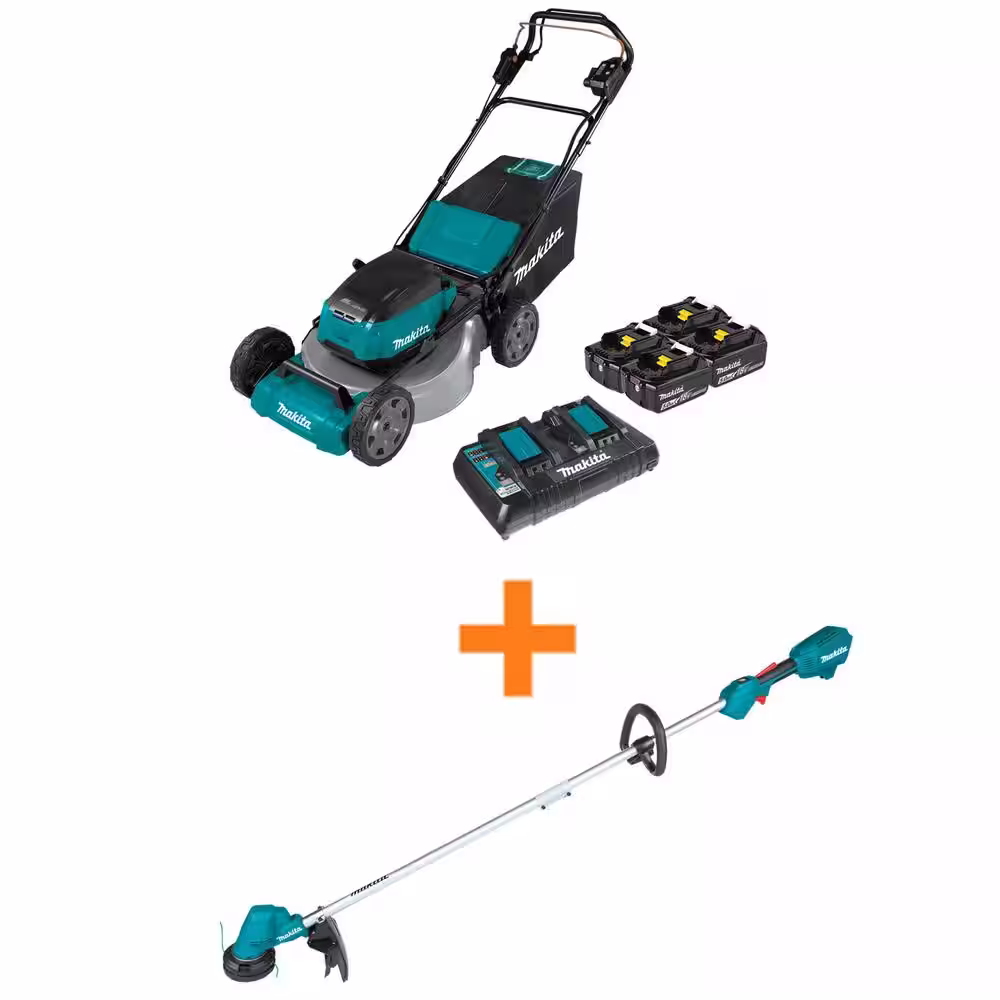 Makita 18-Volt X2 (36V) LXT Cordless 21 in. Self-Propelled Lawn Mower Kit (4 Batteries 5.0Ah) with bonus 13 in. String Trimmer