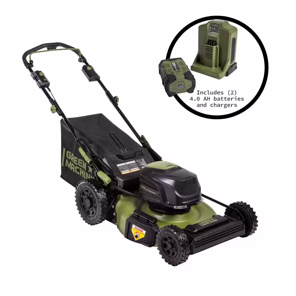 Green Machine 62V Brushless 22 in. Electric Cordless Battery Self- Propelled Lawn Mower with 2 4.0 Ah Batteries and Charger