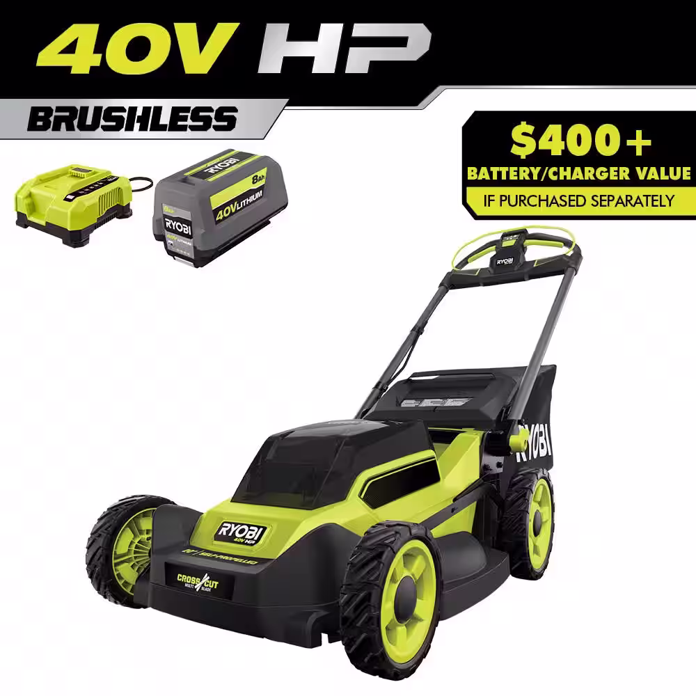 RYOBI 40V HP Brushless 20 in. Cordless Electric Battery Multi-Blade Walk Behind Self-Propelled Mower - 8.0Ah Battery & Charger