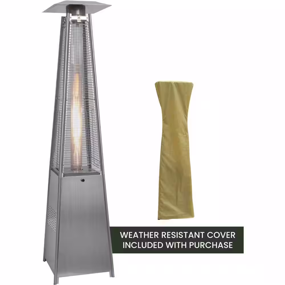Hanover 7 ft. 42,000 BTU Stainless Steel Pyramid Propane Patio Heater with Weather-Protective Cover
