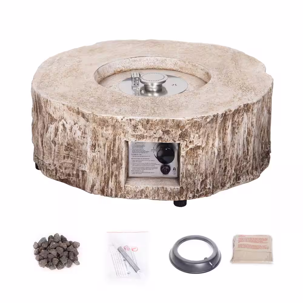None 28 in. W x 10 in. H Ore Powder 30000 BTU Exterior Faux Stone Propane Fire Pit with Water Proof Cover and Lava Rock